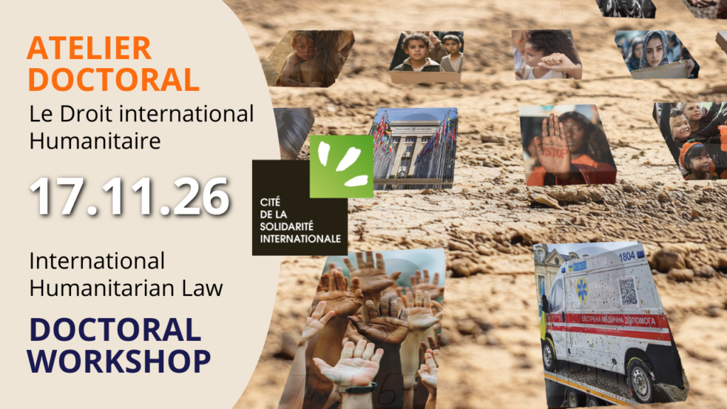 The Cité de la Solidarité Internationale (CSI), as part of its COGIT programme, is organizing an interactive doctoral workshop dedicated to International Humanitarian Law. This workshop offers PhD candidates a unique opportunity to present their research before a panel of professionals from the humanitarian and international solidarity sectors.