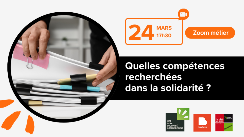 La Cité de la Solidarité Internationale, en partenariat avec Bioforce et la Cité des Métiers, vous invite à participer à son prochain webinaire : « Quelles compétences recherchées dans la solidarité ? »